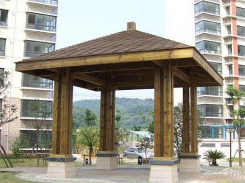 防腐木亭子具有體積不大、用料較少、設計靈活、建筑方便等特點,很適合園林景觀布局的需要。防腐木亭子是在我國園林景觀綠化中運用多的一種建筑形式。無倫是古典園林景觀,還是現代園林景觀中,都可以看到各種各樣豐富多彩的防腐木亭子,屹立于山岡之上;或依附在建筑之旁;或漂浮在水池之畔。以玲瓏美麗、豐富多樣的形象與園林景觀中的其他建筑、山水、綠化等相結合,構成一幅幅生動的畫圖。貴州防腐木亭子成了為園林景觀空間和自然山水增添美色的重要點綴建筑物。防腐木亭子的作用一方面是點綴園林景觀空間、提升環境層次,另一方面是解決人們在旅游休閑中駐足休息,納涼避雨、眺望景色的需要。